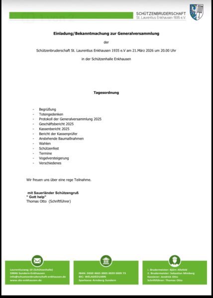 Enkhauser Laurentiusschützen laden zur Generalversammlung ein